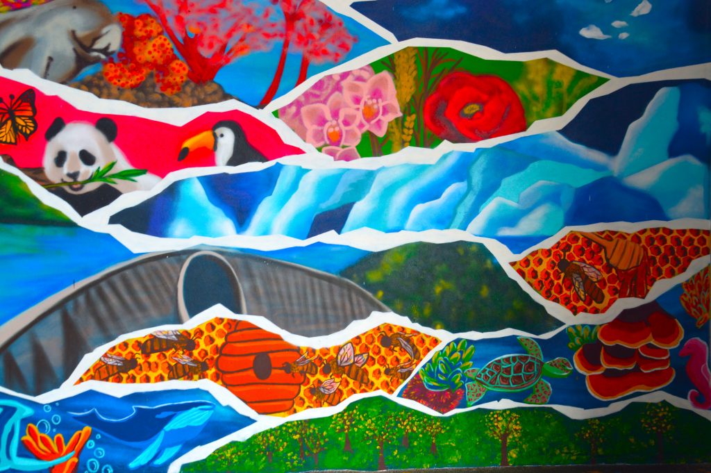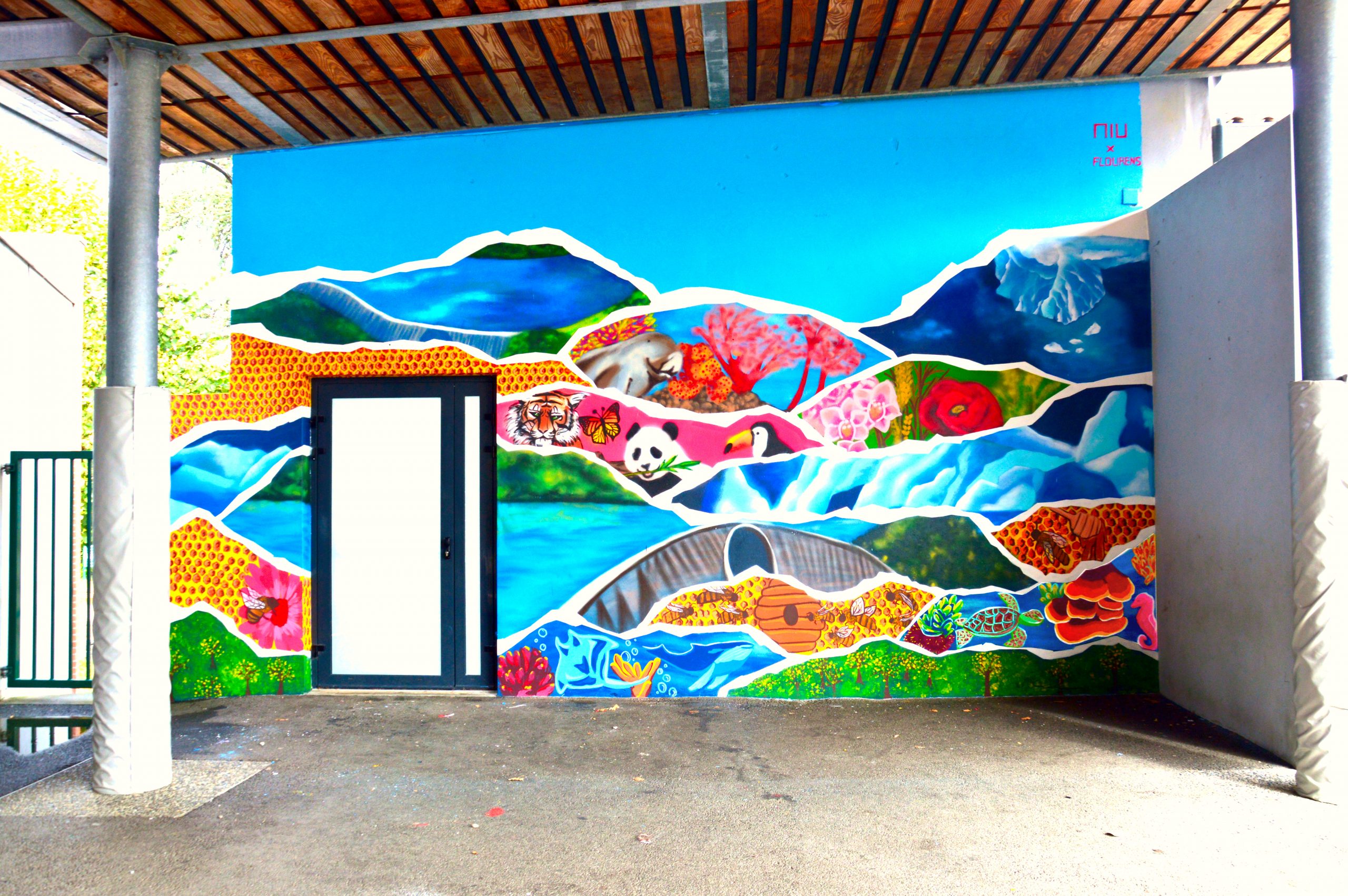 400x500cm, 2025, fresque sur le thème de l’écologie réalisée avec les élèves